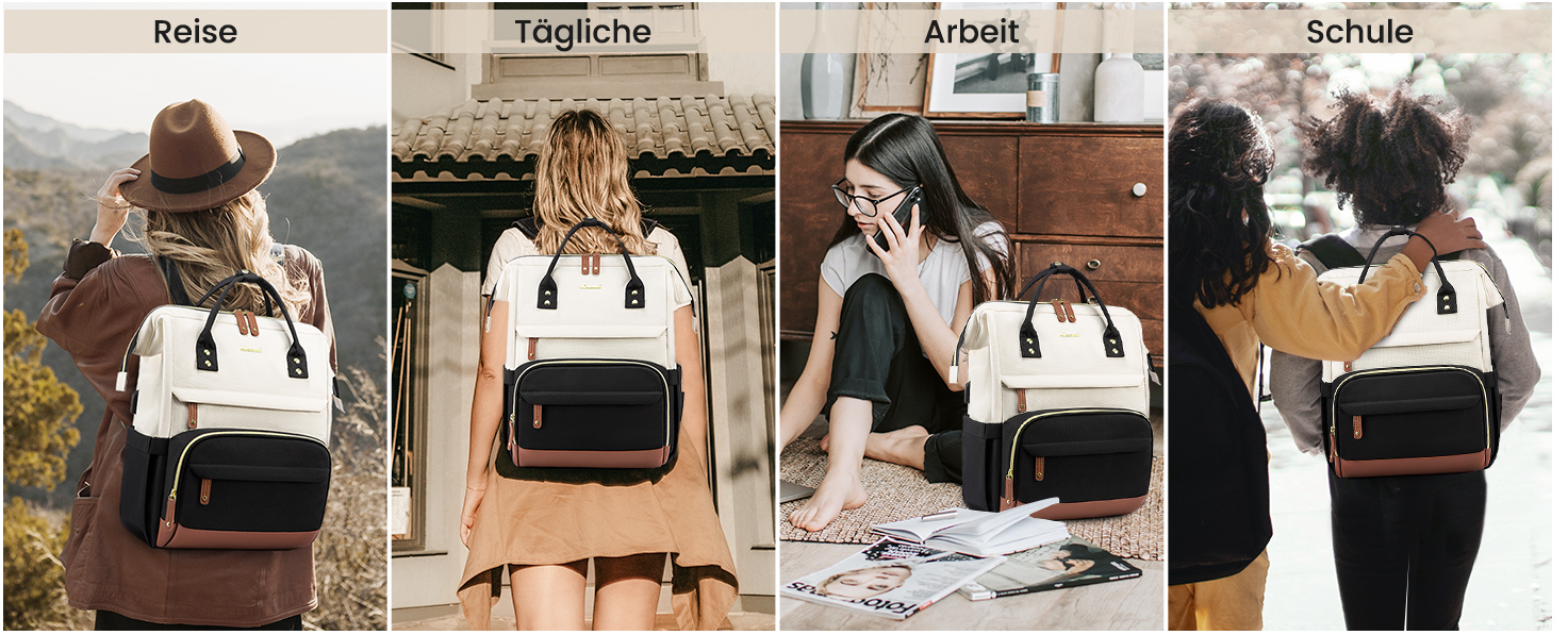 Dieser Rucksack ist vielseitig einsetzbar und eignet sich für Schule, Arbeit, Reisen und tägliche Aktivitäten. Er kann auch als Handgepäck im Flugzeug verwendet werden, was ihn zu einem idealen Begleiter für Vielreisende macht. Darüber hinaus ist er ein perfektes Geschenk für Frauen, sei es für Schülerinnen, Studentinnen, Krankenschwestern, Lehrerinnen oder andere Geschäftsleute.